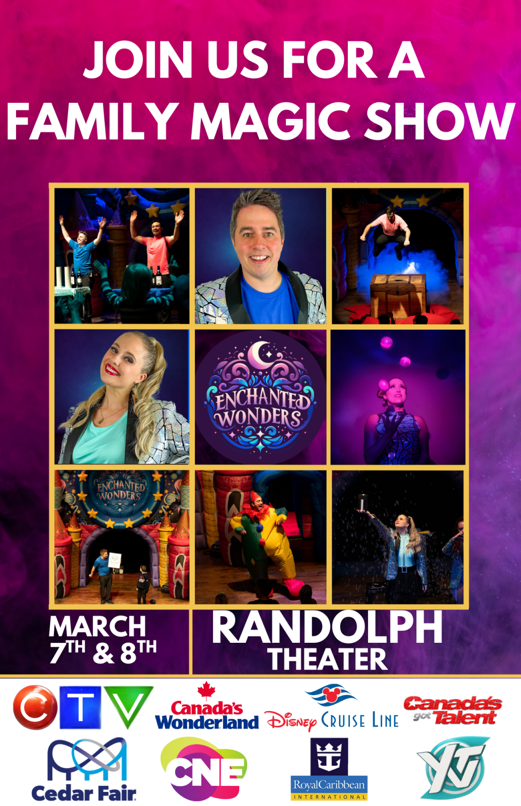 Step into a world of imagination, laughter, and jaw-dropping magic with Enchanted Wonders, a high-energy, family-friendly theatrical experience that blends magic, comedy, illusions, and circus-style performance into one unforgettable 75-minute show.